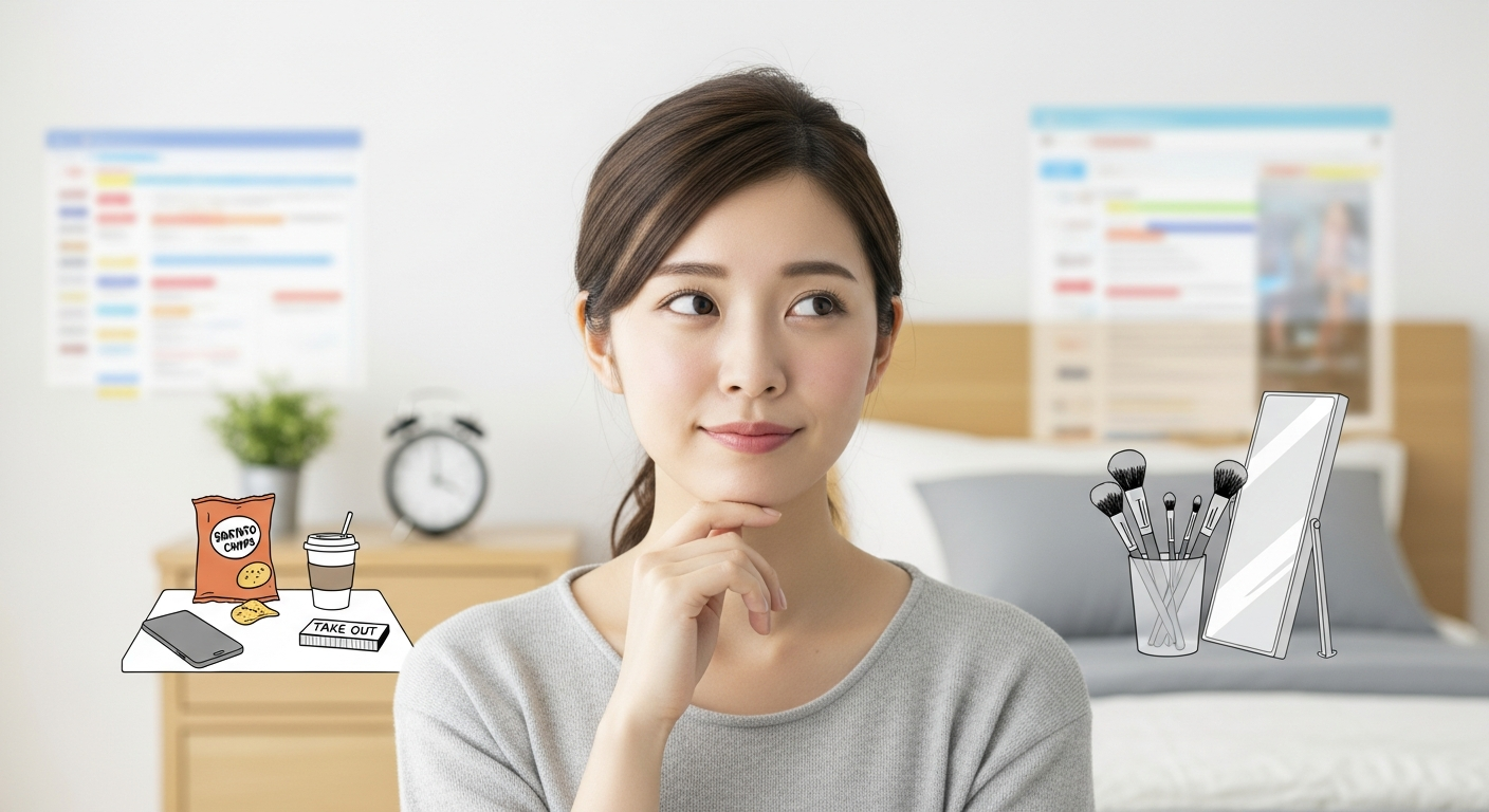 睡眠不足は、生活全体のバランスを崩しやすく、肌のコンディションにも影響が出やすくなります。「毎日同じ時間に寝る・起きる」を意識するだけでも変化が出る人は多いです。