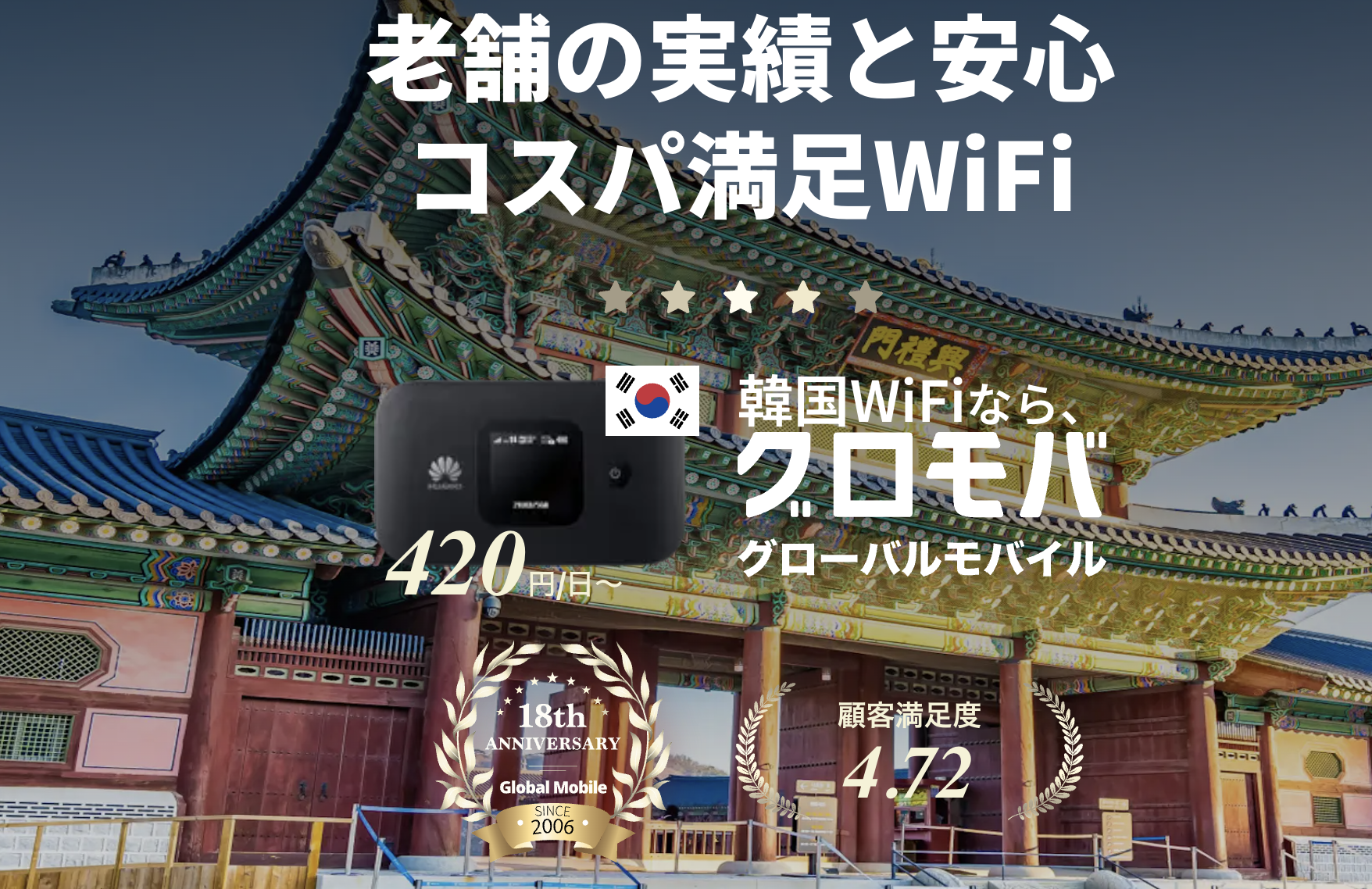 そんな方におすすめなのが、韓国専用WiFiルーターレンタル【韓国データ】です。SIMカードや海外ローミングよりも使いやすく、旅行者にとって利便性が非常に高いサービスとして人気があります。