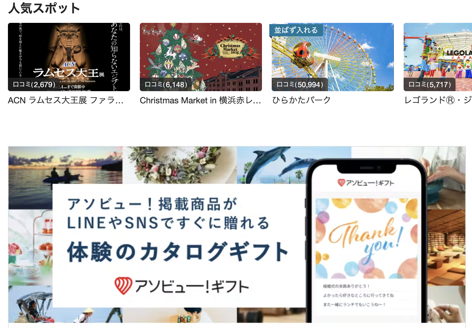 個別の施設サイトを一つずつ確認する方法では、比較や予約に時間がかかります。アソビューでは複数の体験を一覧で比較できるため、選択までの手間を減らしやすくなっています。