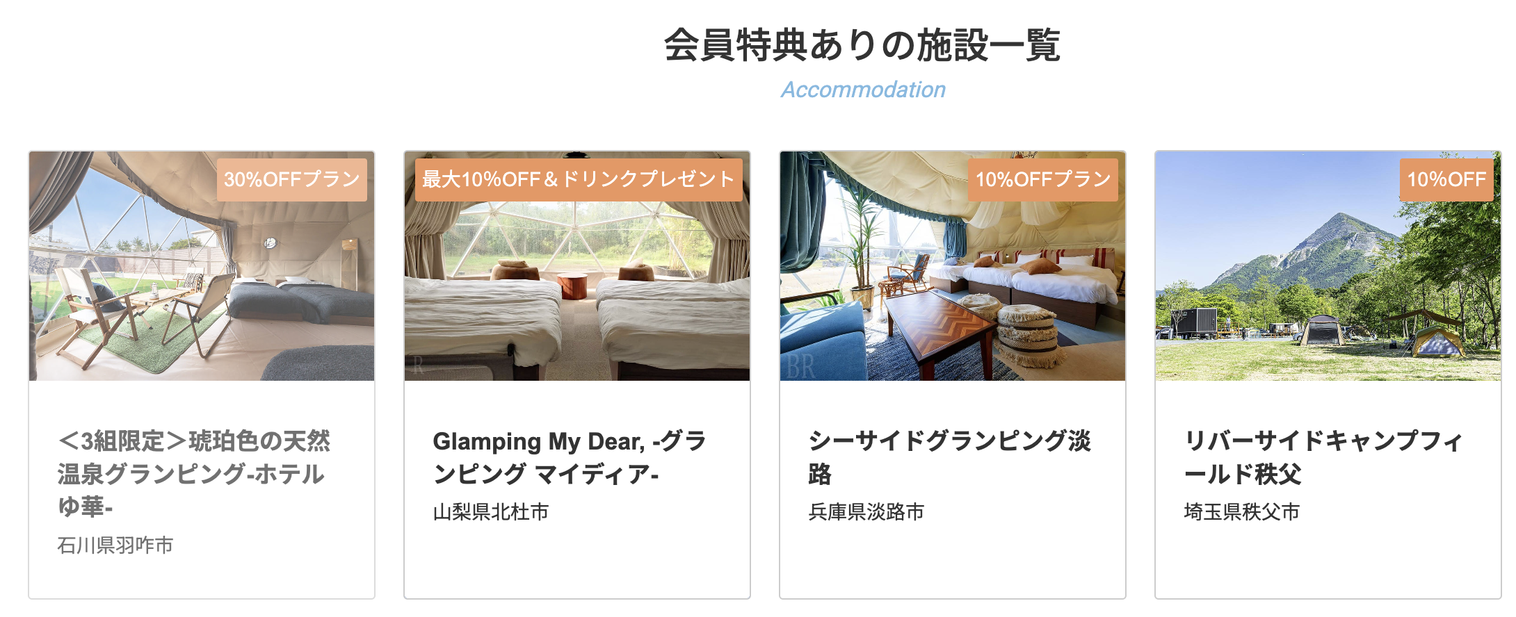 • グランピング施設に特化した検索性