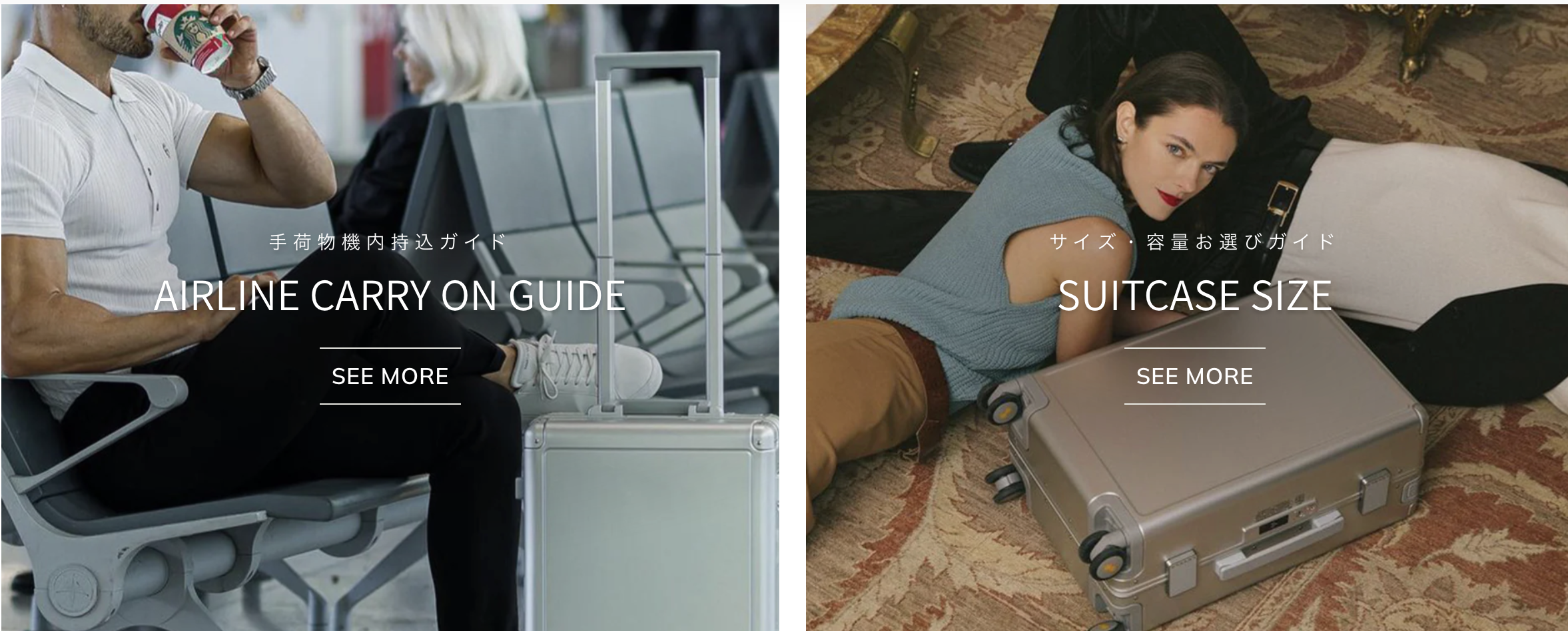 用途やサイズの目安が分かりやすく掲載されているため、スーツケース選びに慣れていない方でも検討しやすい構成です。