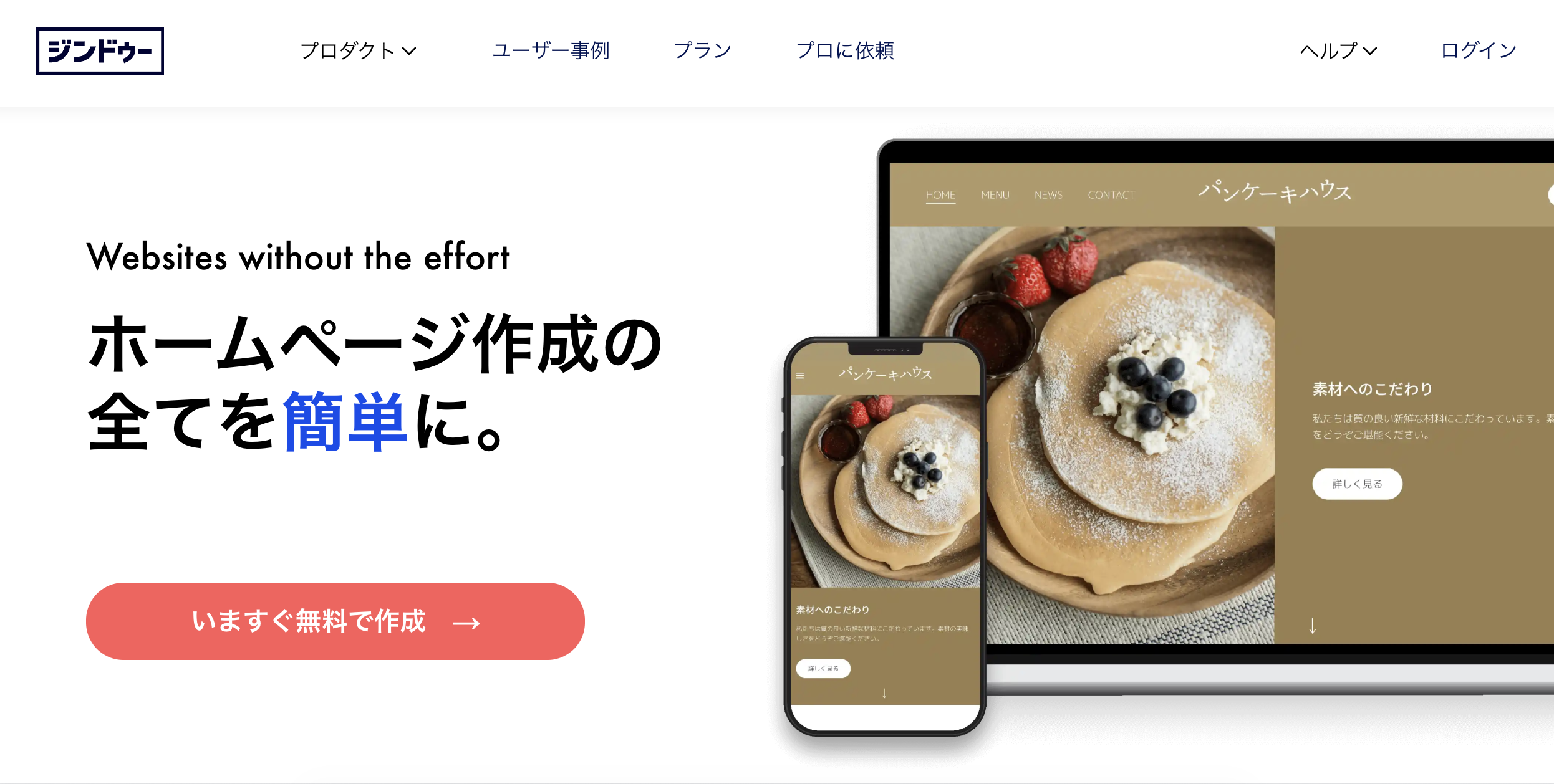 ジンドゥーは、誰でも直感的に操作できるホームページ作成ツールです。パソコン操作が苦手な方でも、画面の案内に沿って進めるだけでページが完成します。文章や画像を入力する感覚は、普段使っているメールやSNSとほぼ同じです。