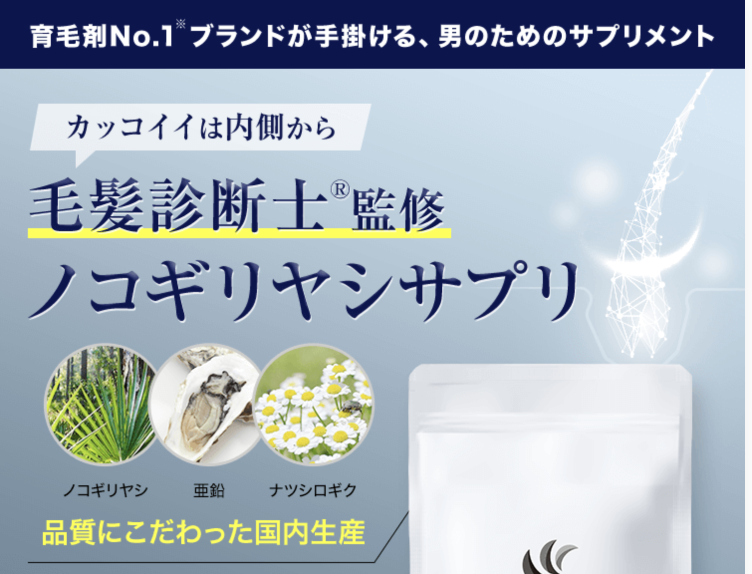 - 育毛剤だけでなく内側からもケアしたい